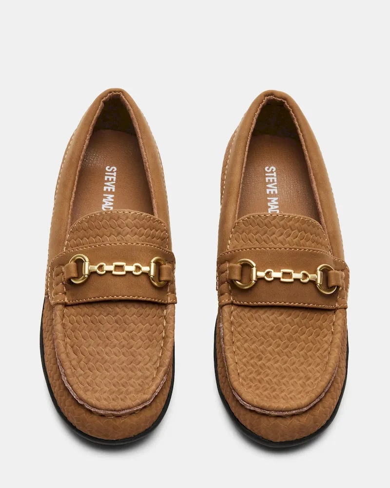 Expertly crafted for young trendsetters, the kids’ JUSTINN is a stylish slip-on loafer featuring delicate horsebit hardware. Perfect for any occasion, this kids’ dress shoe exudes timeless elegance and effortless charm. Elevate your child’s look with this must-have addition to their wardrobe.