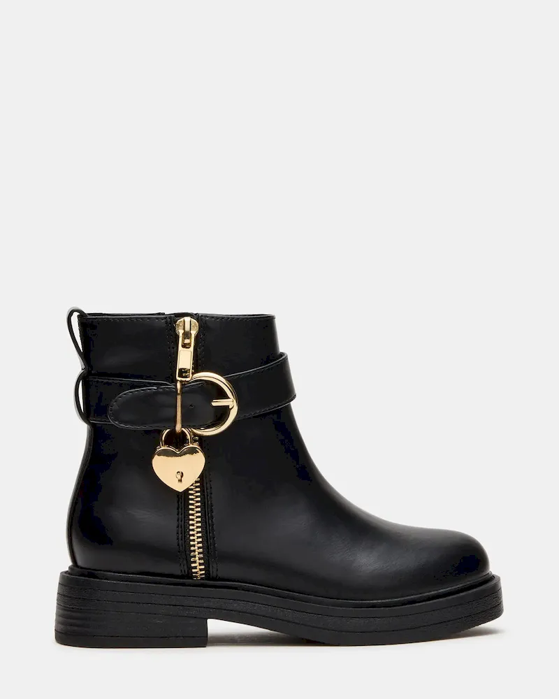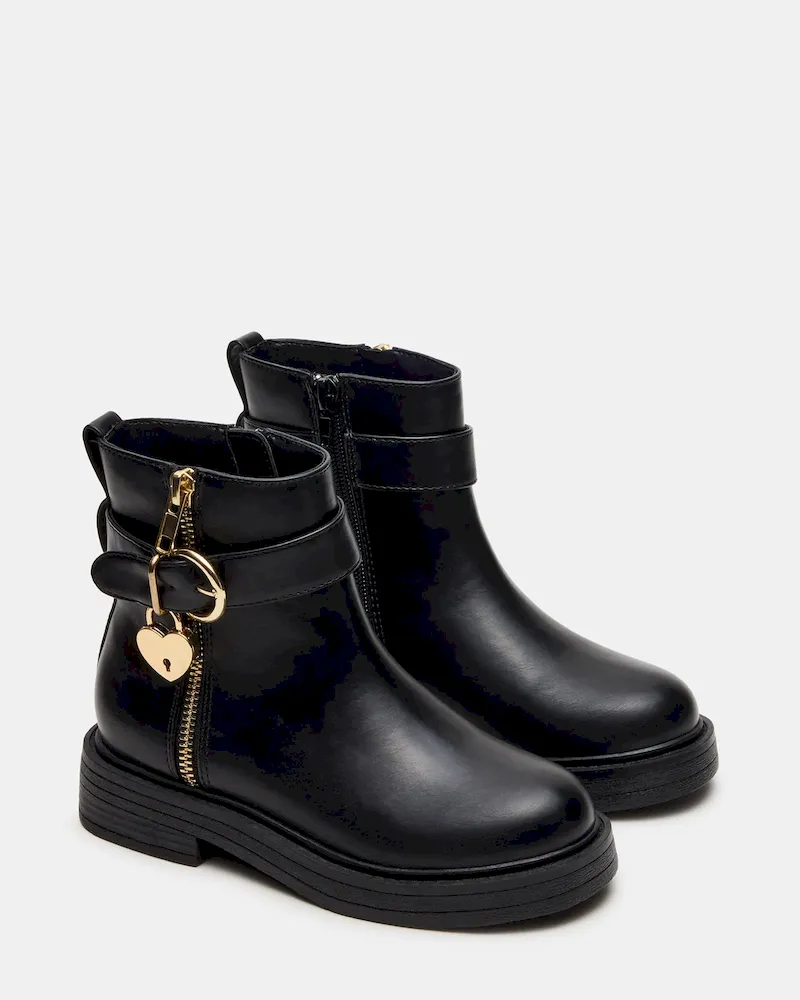 These KIDS’ LOCKET BLACK ankle boots combine the classic Chelsea boot silhouette with a durable lug sole for enhanced traction and stability. Designed for active kids, the slip-on bootie style ensures easy wear while providing ankle support and all-day comfort. Crafted with quality materials, they are perfect for everyday adventures, blending style and function seamlessly.