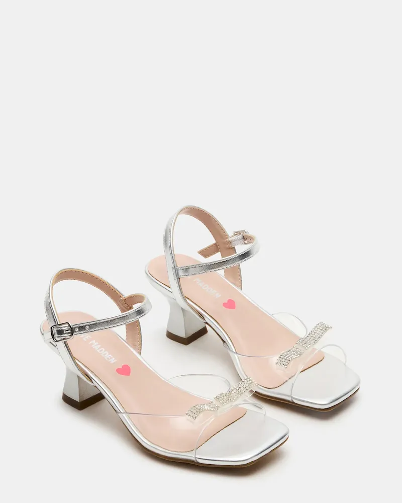 Elevate your child’s style with our kids’ MERRY shoes. A perfect blend of comfort and fashion, our square-toe heel boasts a rhinestone bow detail that adds a touch of sparkle. The secure ankle strap provides a snug fit for all-day wear. Give your child the gift of style and comfort.