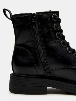 Introducing the kids’ NOLITA combat ankle booties. This bootie combines style and durability for your kids’ everyday adventures. Made for all-day wear, these boots are perfect for any occasion. Comfortable and versatile, they will quickly become their go-to shoes for any activity.
