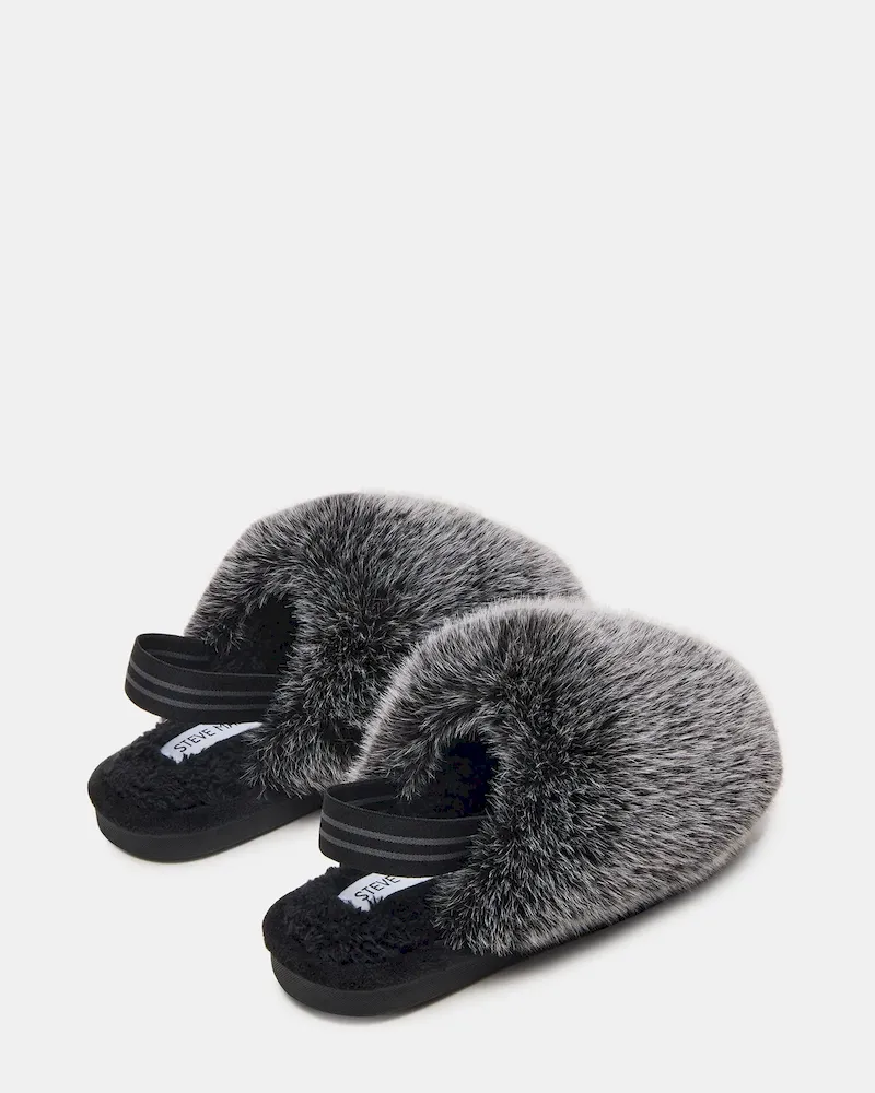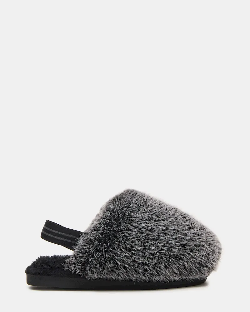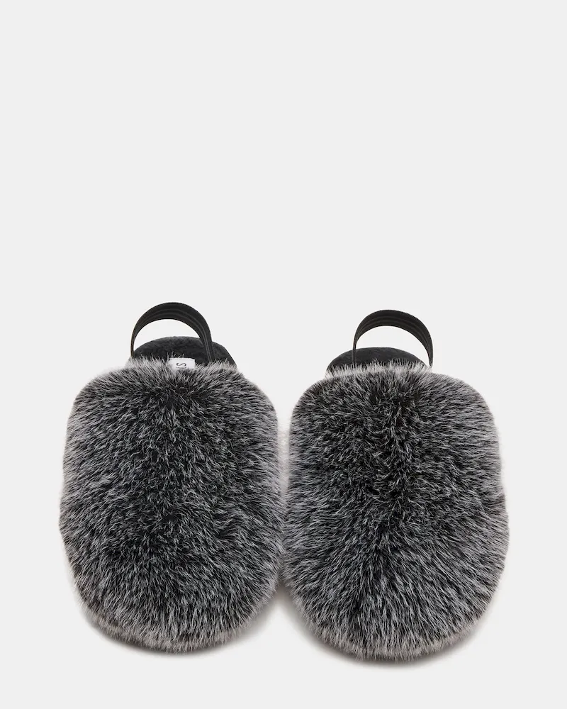 The kids’ POOF is a comfy flat featuring soft faux fur that ensures warmth and comfort for your child. Its durable construction supports everyday wear, making it ideal for both indoor lounging and casual outings. The stylish grey shade complements various outfits while providing a snug fit designed for kids.