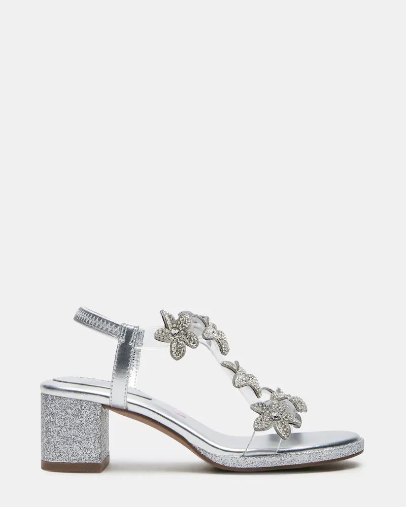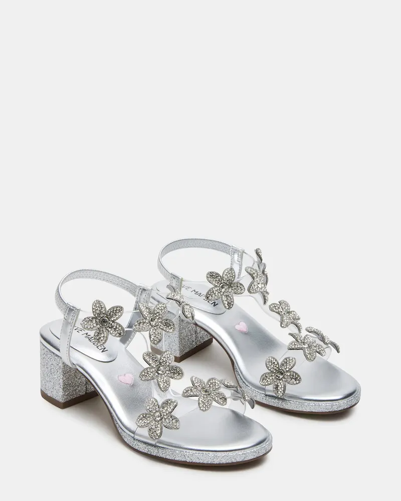 Expertly designed for comfort and style, the kids’ SAVVY features a strappy heel and block heel for stability and support. The rhinestone flower embellishments add a touch of sparkle, making it the perfect choice for your little one’s special occasion.