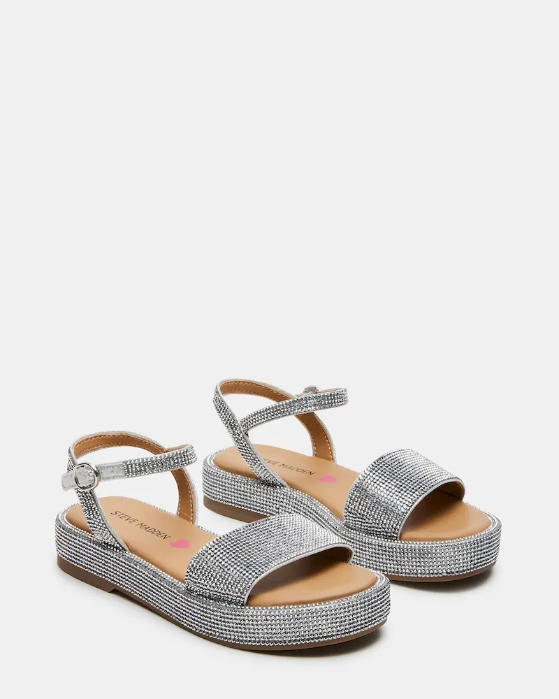 Introducing the kids’ SWEETER platform sandal! With a secure ankle strap and flatform design, this shoe offers both style and functionality. The rhinestone embellishments add a touch of glamour, making it perfect for any occasion. Give your little one the confidence and comfort they need with this trendy sandal.