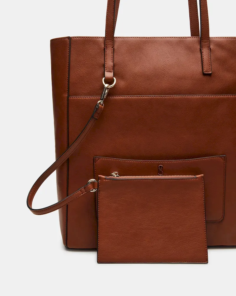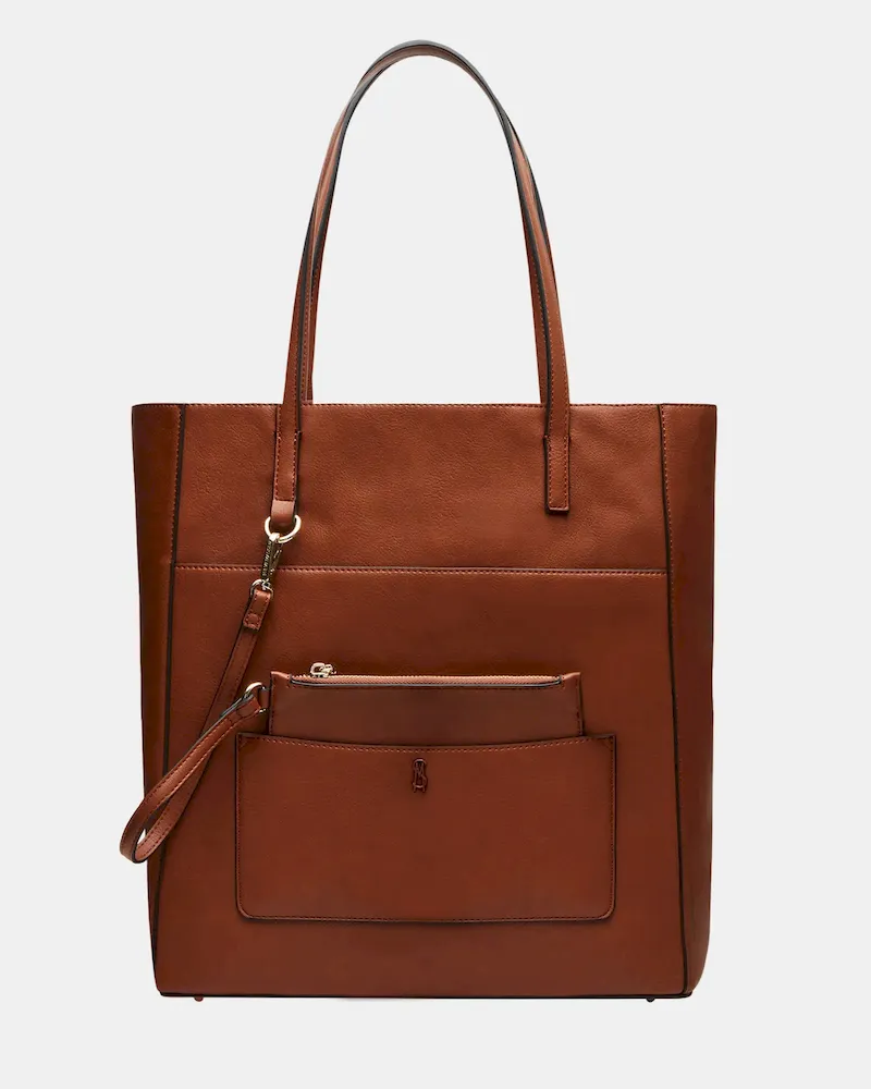 Enhance your daily look with the KIMMY bag. This shoulder tote bag features an interior back wall for organized storage, a front slip pocket for easy access to essentials, and a patch pocket for added convenience. Plus, a removable pouch adds versatility and style to this must-have accessory.