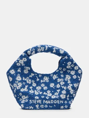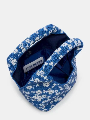 This KINSLEY mini beaded bag features a beaded design with a Steve Madden logo. It has a versatile design that can fit most phones. Stay stylish and organized with this trendy accessory.