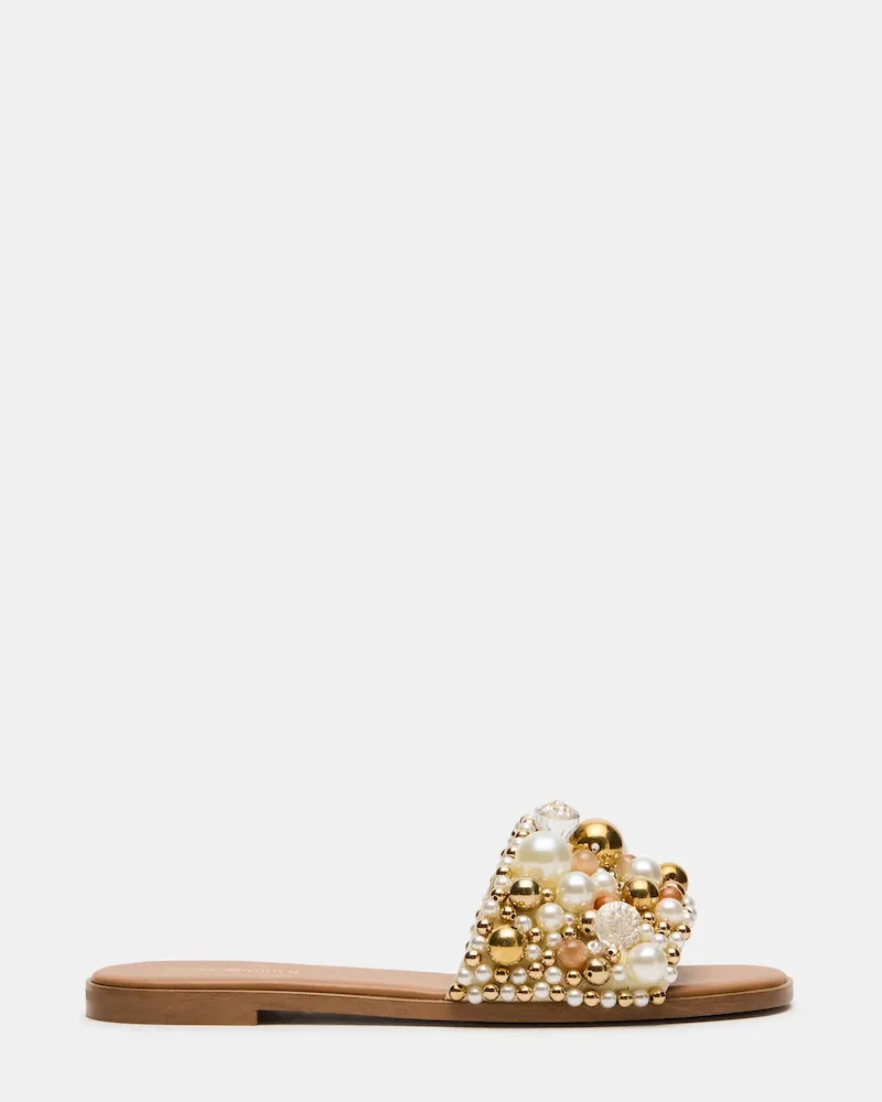 The KLIO CORAL MULTI slide sandal showcases elegant and unique ornament embellishments, elevating any outfit. Crafted with quality materials, this sandal offers both style and comfort, making it a must-have for every fashion-forward individual. Add a touch of glamour to your wardrobe with these beautiful slide sandals.