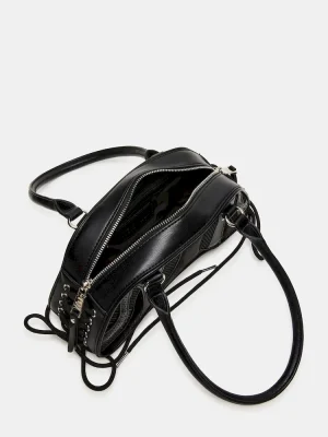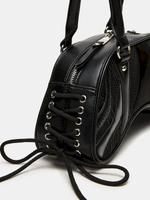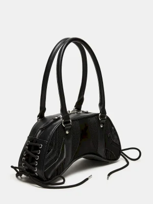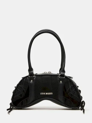 Elevate your accessory collection with the KODY BAG BLACK. This sophisticated shoulder bag features practical tubular straps and distinctive grommet lacing along the sides for structural interest. The front buckle detail adds a touch of edgy refinement, while the secure top zipper closure ensures your essentials stay protected. Versatile enough for both day and evening wear.