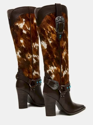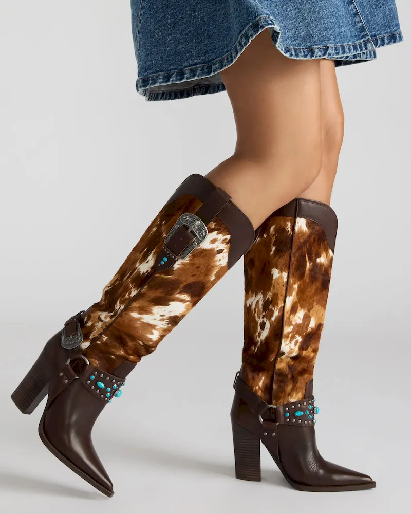 The KOLT-H boot combines classic Western style with modern sophistication. Featuring a pointed-toe and sturdy block heel, it offers both elegance and stability. The distinctive buckle design adds a unique, eye-catching detail, making this boot a versatile choice for elevating your wardrobe with expert craftsmanship and timeless appeal.