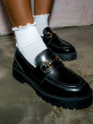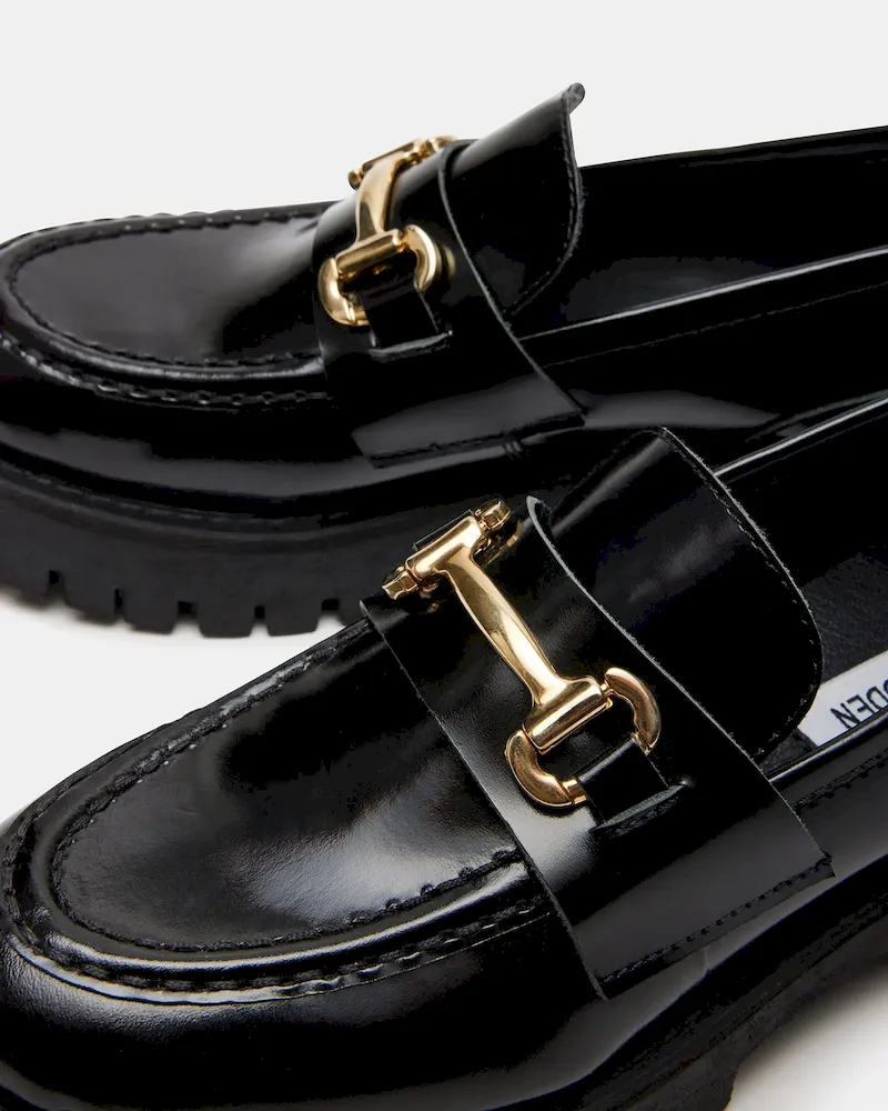 Not just for prep school, LANDO makes a cool statement. Set on a chunky lug sole, this platform loafer is detailed with classic horsebit hardware.