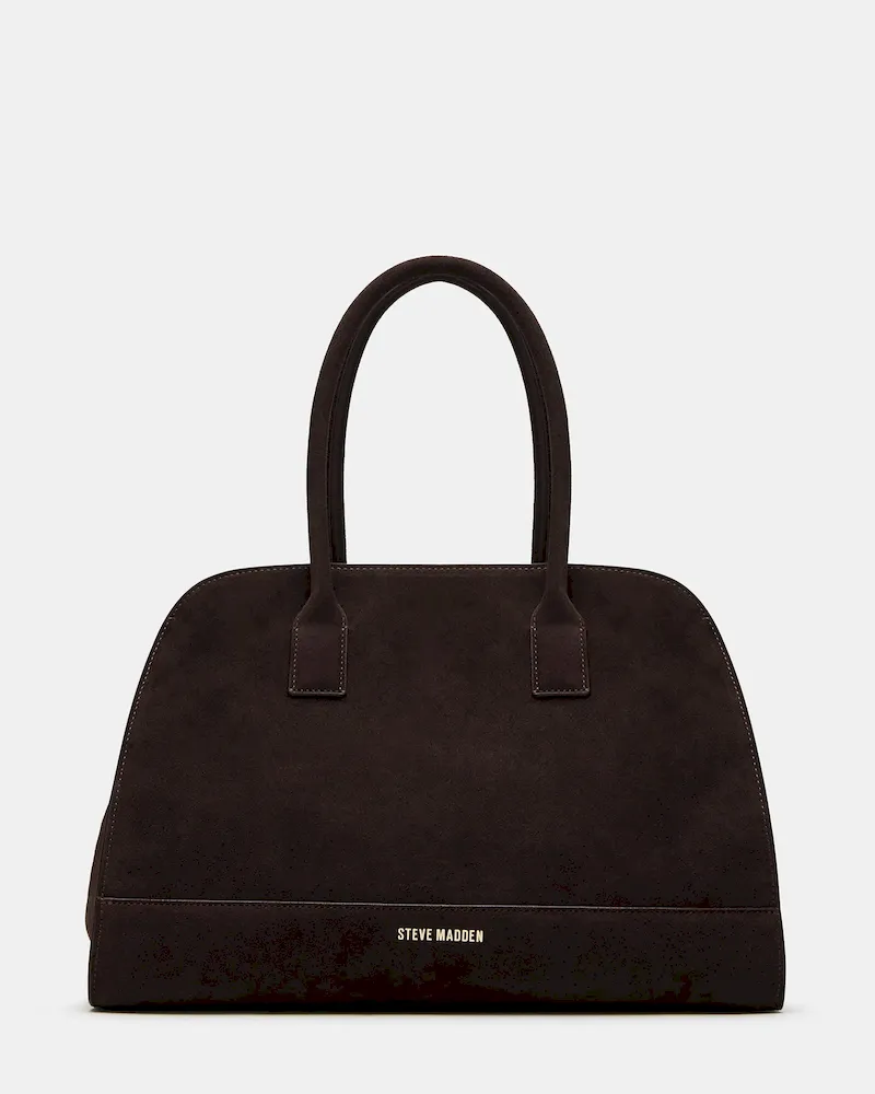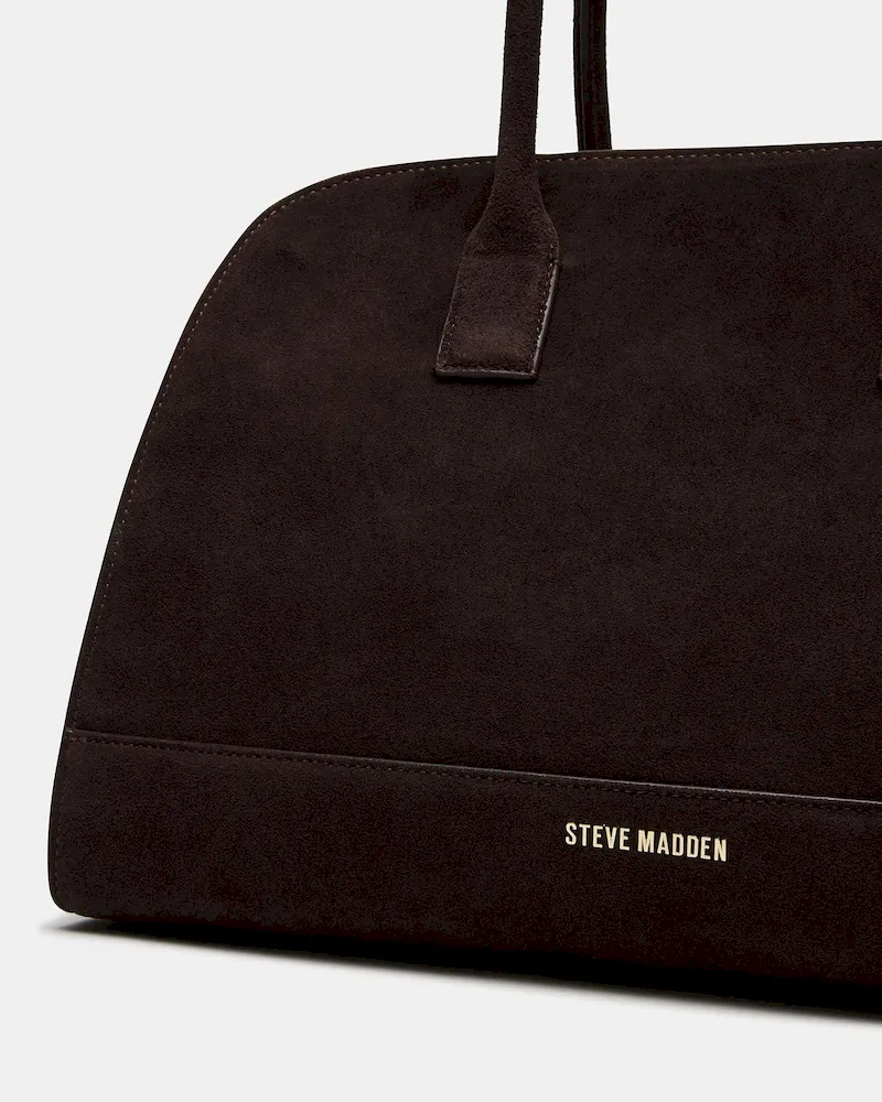 The HEIDEE bag is the ultimate everyday shoulder bag tote. Made with suede materials, it features an inside zip pouch for secure storage, a convenient snap button closure, and stylish buckle detail on the shoulder straps. Stay organized and look fashionable with this must-have accessory.