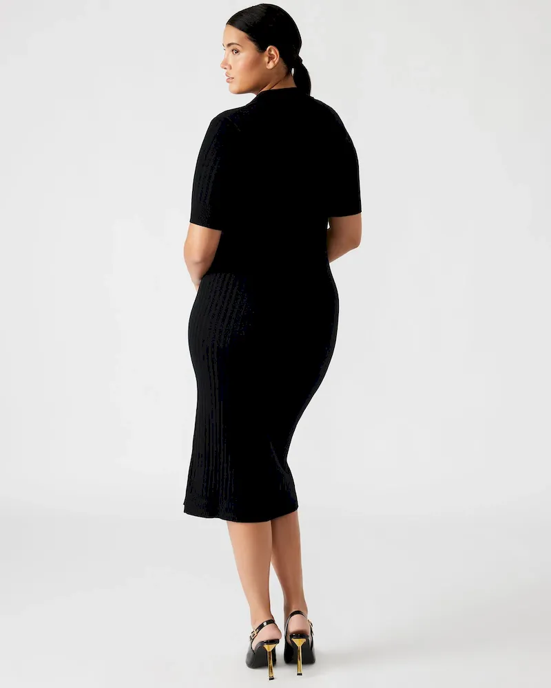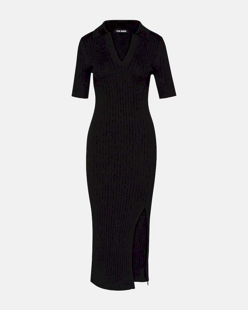 Expertly crafted for a sleek and modern look, the LINDY dress offers a fitted body with a short-sleeved design and collar. The textured stitching adds a touch of sophistication, while the front slit adds a subtle edge. Perfect for any occasion, this dress will elevate your style game.
