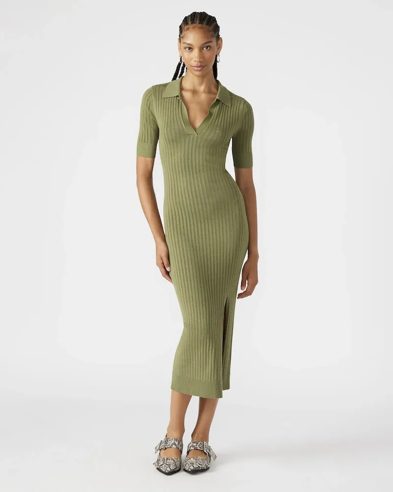 - Ribbed knit midi dress