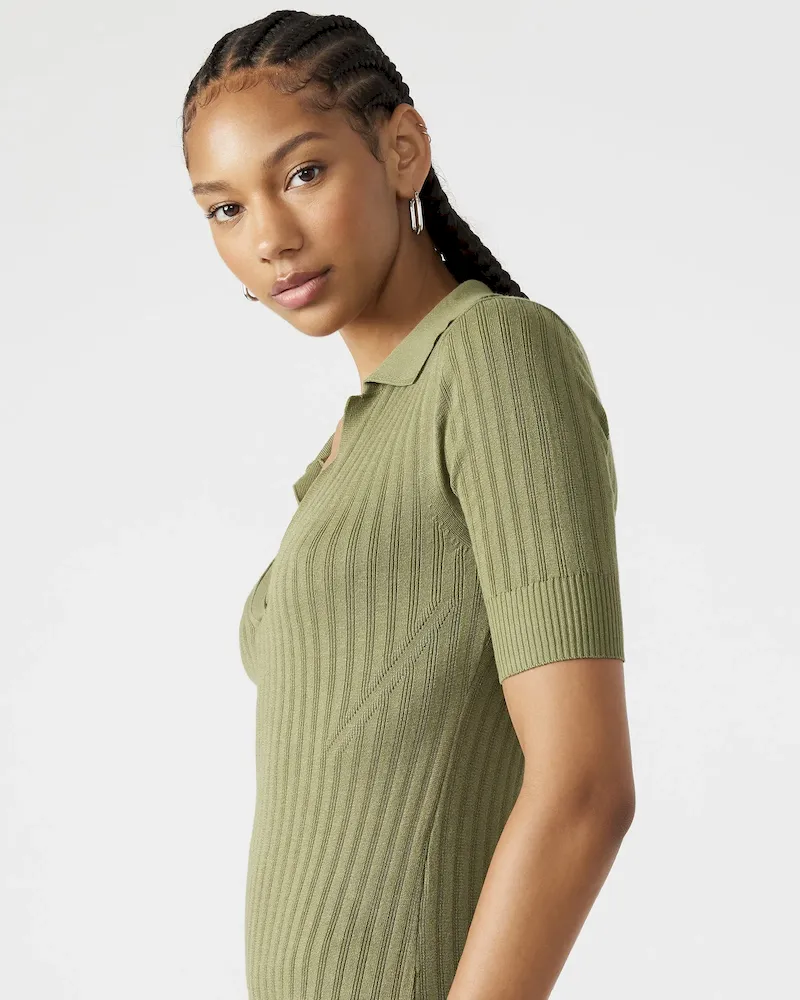 Expertly crafted for a sleek and modern look, the LINDY dress offers a fitted body with a short-sleeved design and collar. The textured stitching adds a touch of sophistication, while the front slit adds a subtle edge. Perfect for any occasion, this dress will elevate your style game.