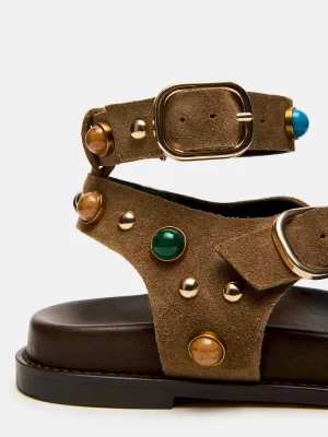 - Suede upper material with hardware