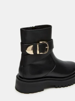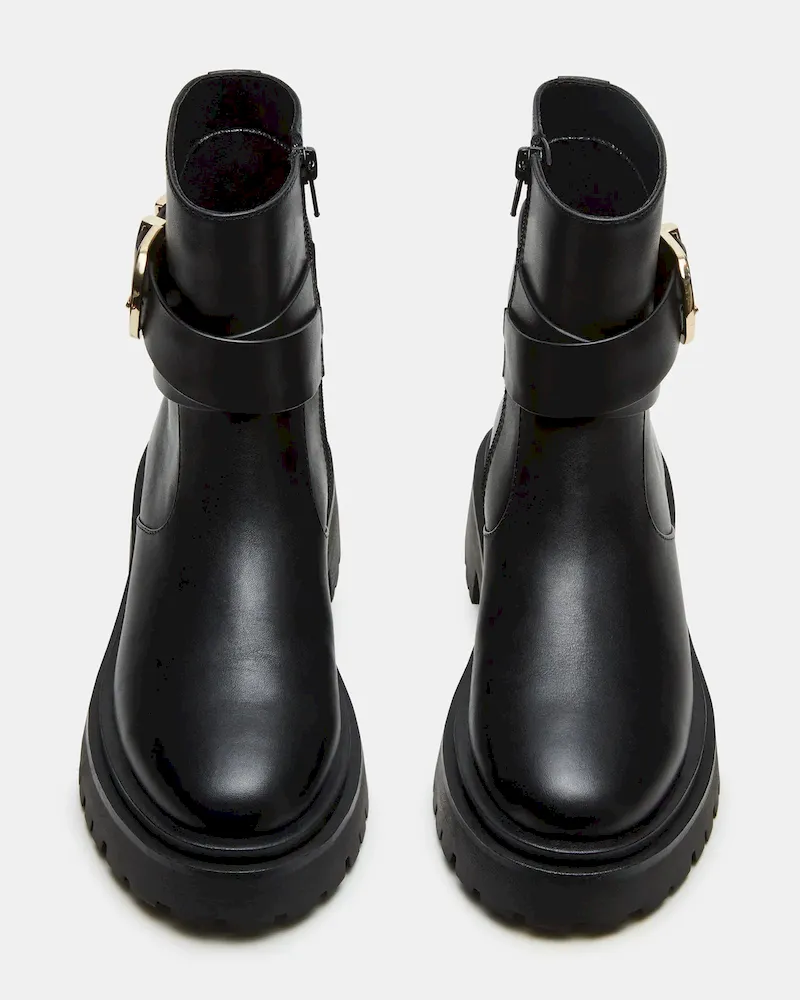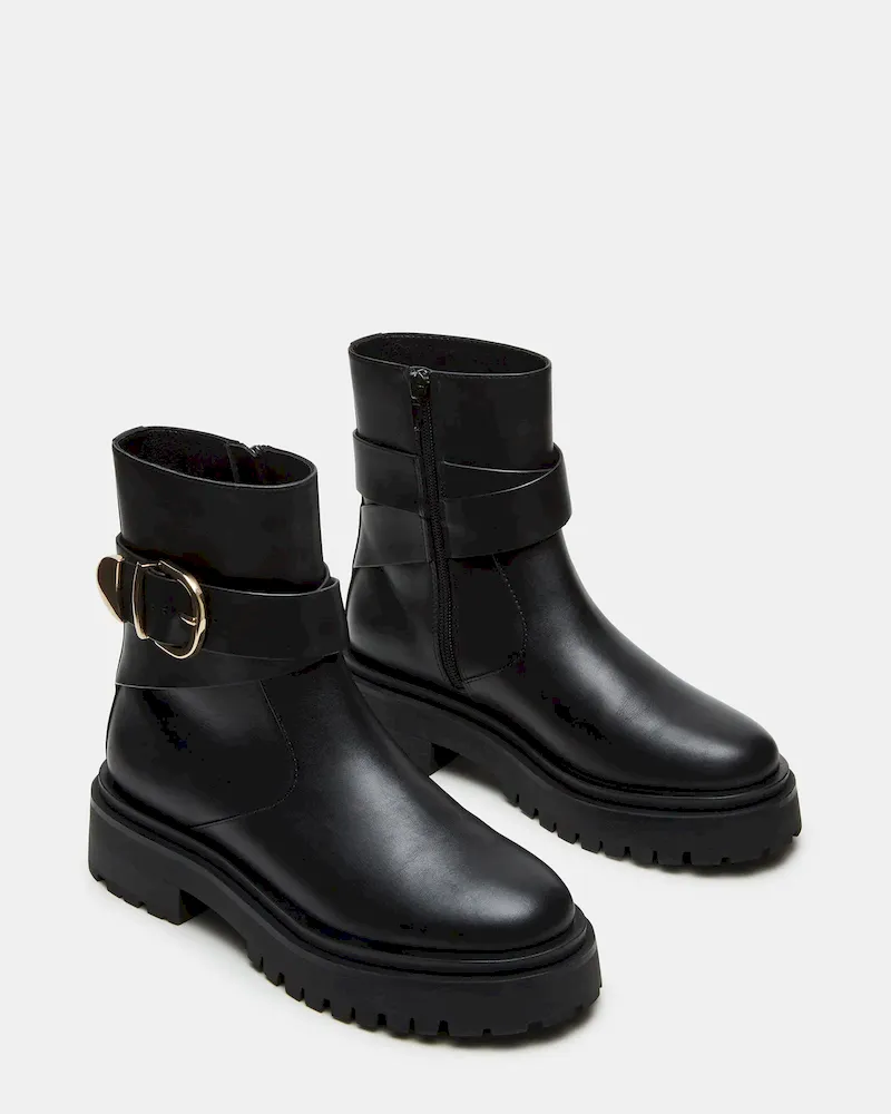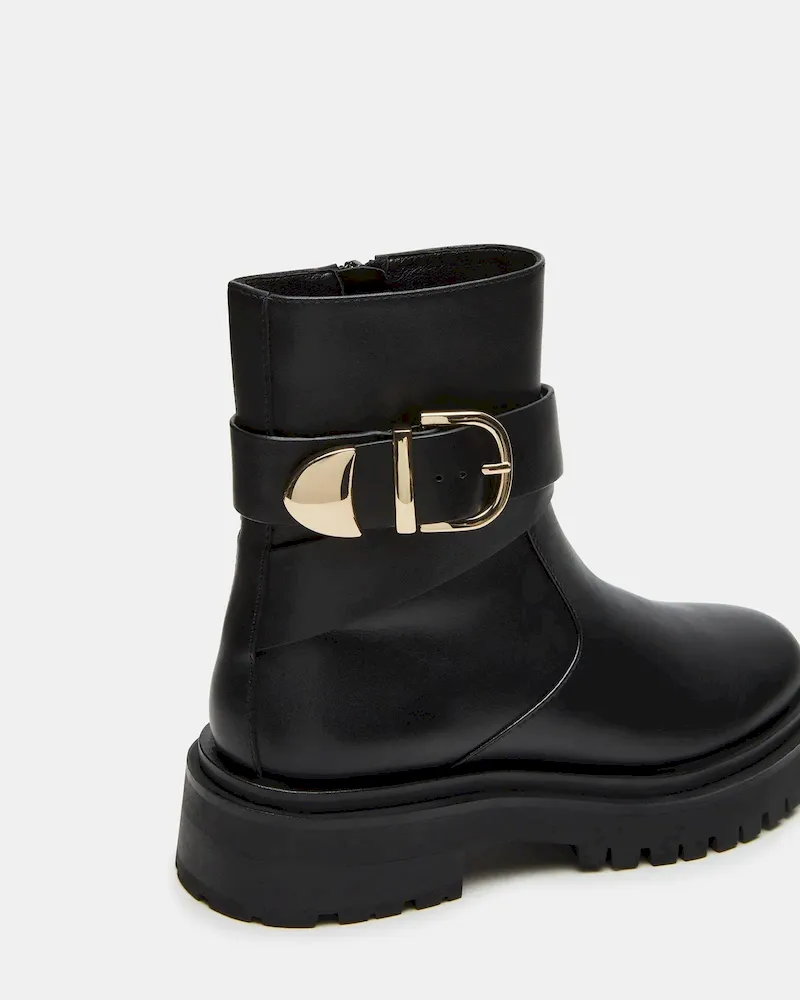 Experience superior style and comfort with the LONNY ankle bootie. Featuring a durable lug sole, these boots are perfect for all day wear. The sleek buckle detailing adds a touch of sophistication to any outfit. Elevate your wardrobe with this must-have essential.