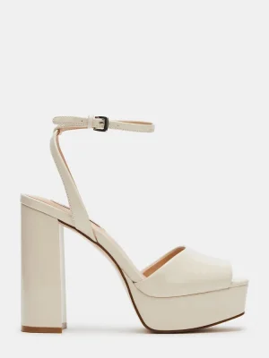 The LOURDES sandal secures a chunky block heel and front platform with delicate straps in a dressy look.