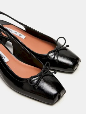 The LOVED BLACK CRINKLE PATENT features a sophisticated ballet square-toe silhouette combined with a secure slingback design, blending modern style with comfort. Crafted for an expert fit, its unique finish adds a polished look perfect for elevating both professional and casual ensembles. This heel offers refined support while maintaining a sleek profile ideal for day-to-night wear.