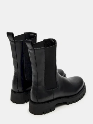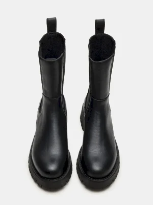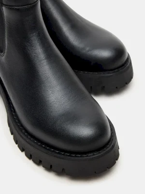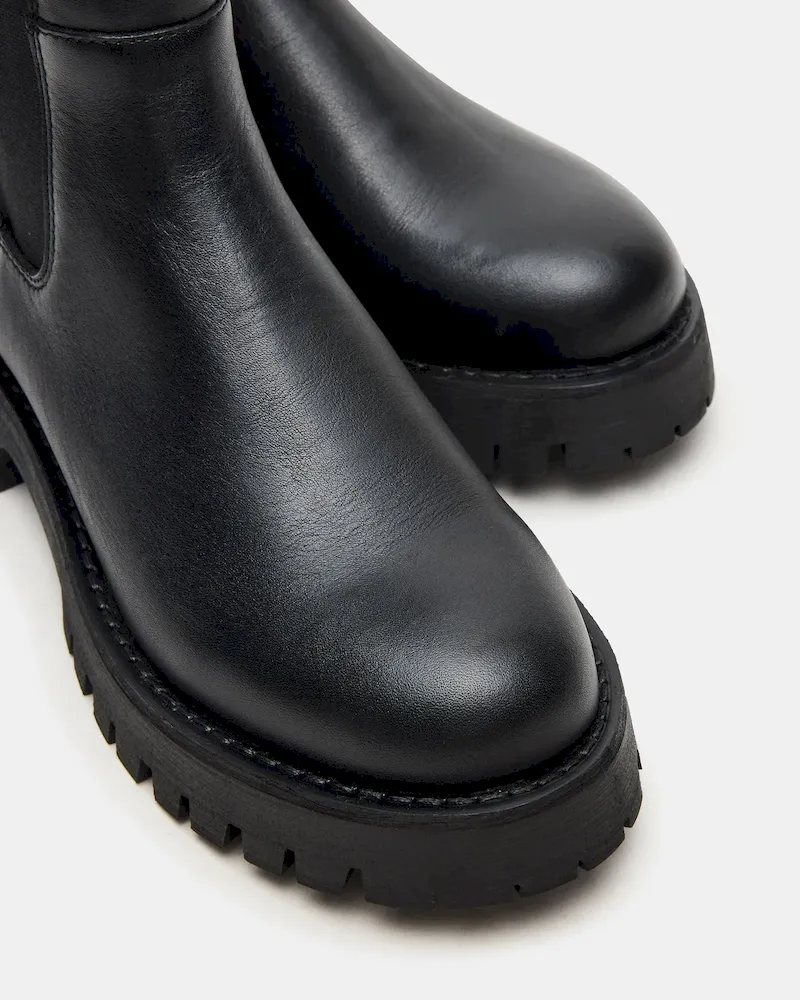 The LOWA BLACK LEATHER platform lug Chelsea ankle boot combines rugged durability with sleek style. Crafted from premium materials, this bootie features a platform lug sole that provides enhanced traction and stability. Its classic Chelsea design with elastic side panels ensures easy on-and-off wear while maintaining a streamlined silhouette. Ideal for both urban and outdoor settings, this boot delivers expert-level comfort and lasting performance.