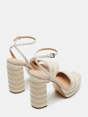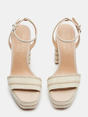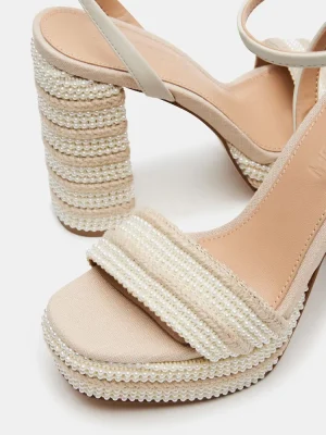 Elevate your beach wedding style with LUMARA heels. The block heel and platform provide comfort, while the ankle strap ensures a secure fit. The pearl and raffia detail add an elegant touch. Perfect for any bride seeking both fashion and function.