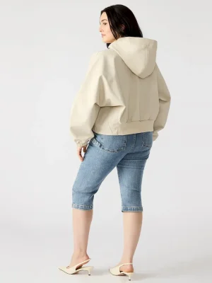 - Hooded fax leather jacket