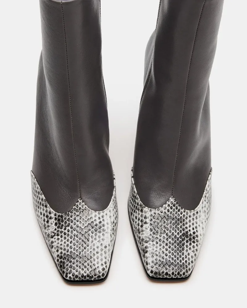 Upgrade your look with our LYLE GREY LEATHER heeled ankle boot, designed with a trendy square-toe. Whether it’s a chic bootie for a night out or a stylish touch to your everyday attire, enjoy the versatility and comfort of this must-have essential.