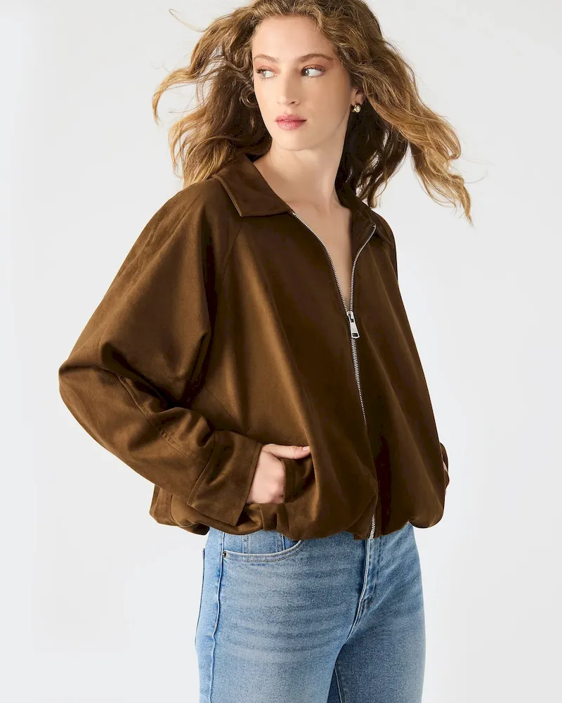 This MACKEY long-sleeved zip-up jacket features a structured collared neckline and two functional front pockets, combining practicality with a polished look. Crafted for versatility, it offers both comfort and style, making it an essential layering piece for transitional weather.