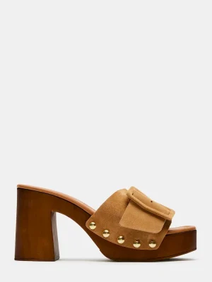 Step out in style with MARLENA! These unique sandals feature a wood block heel and platform for comfortable height, while the mule design adds a touch of elegance. The oversized buckle detail gives a playful twist to the classic resort look!