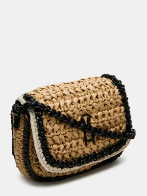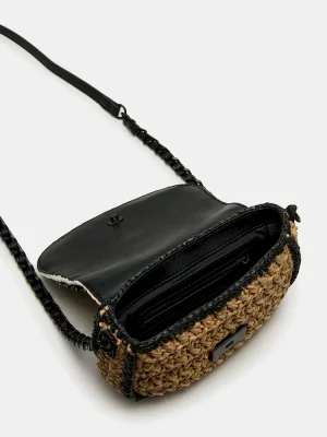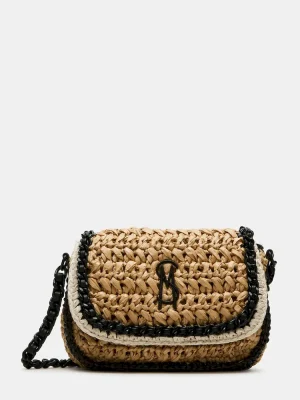 Introducing the MAR bag, a stylish and practical straw crossbody bag. It features a front flap with hidden push-lock closure, an interior front wall and pouch back wall, and a convenient chain crossbody strap. Stay organized and fashion-forward with this must-have accessory.