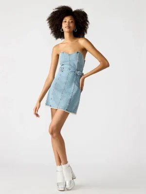Expertly designed for comfort and style, our MATILDA denim dress features a strapless design and convenient back zipper closure. Perfect for any occasion, this mini dress combines chic denim with effortless elegance. Trust in our expertise and elevate your wardrobe with this must-have piece.
