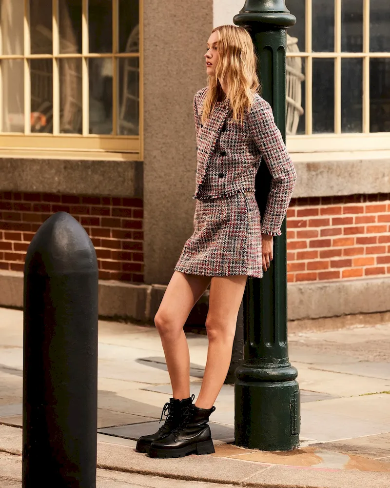 Expertly crafted and designed, the MATTEA skirt is a multi-colored speckled mini skirt that is sure to elevate any outfit. Featuring a convenient side zip closure and is fully lined for added comfort, this tweed skirt is perfect for any occasion. Enjoy the benefits of a versatile and stylish addition to your wardrobe.