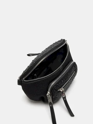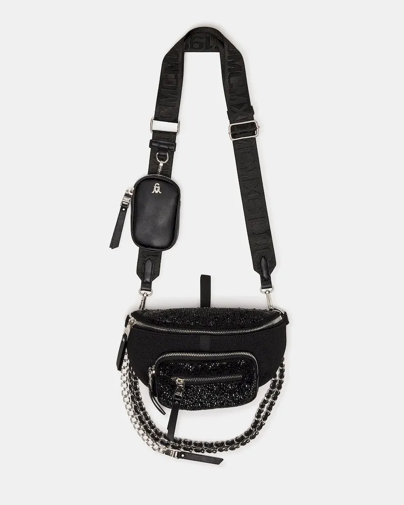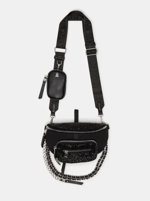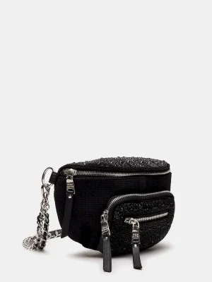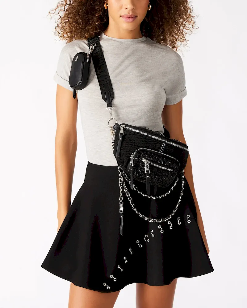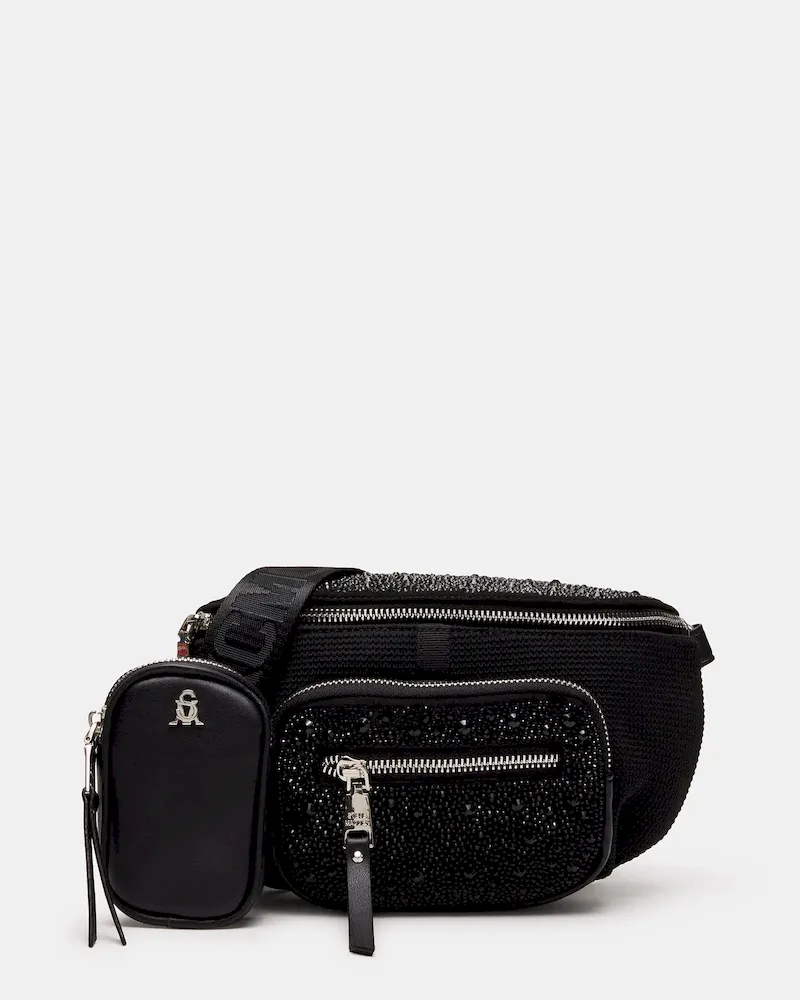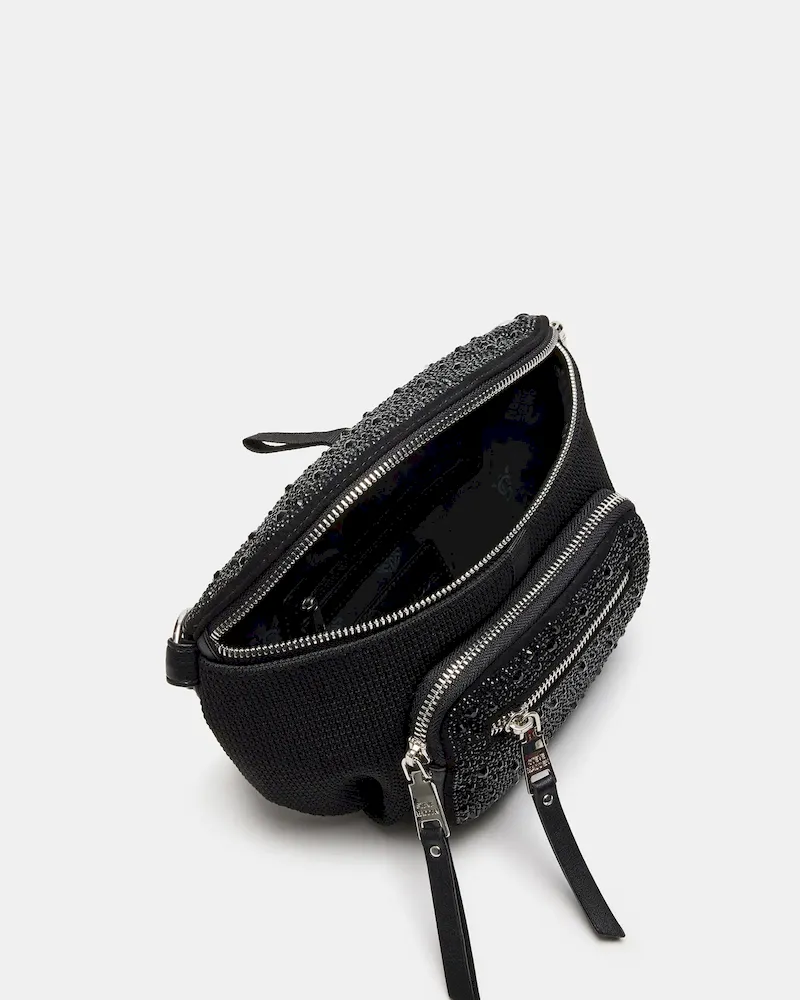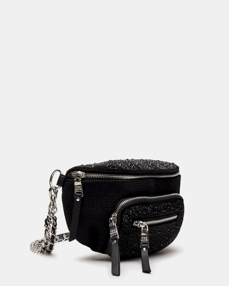 Enhance any outfit instantly with the MAXIMA BAG BLACK, a rhinestone belt bag designed for stylish functionality on the go.