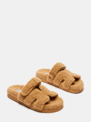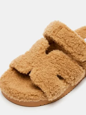 - Faux shearling flatform slide