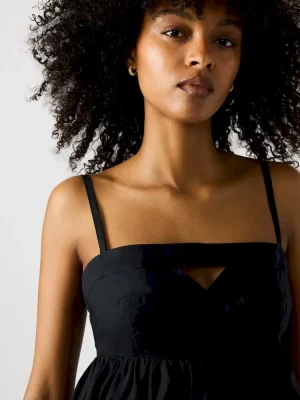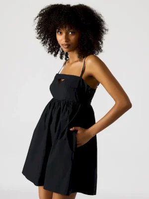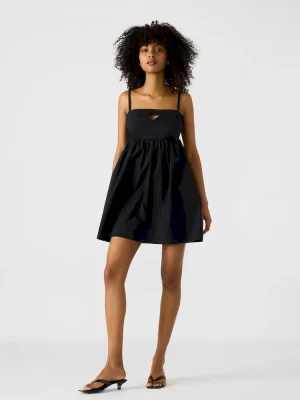 Expertly crafted, the MEADOW dress is a versatile addition to your wardrobe. Its mini length and adjustable straps allow for a comfortable and flattering fit. The flowy skirt and cut-out detail add unique and stylish elements. Perfect for any occasion, this dress is a must-have for any fashion-forward individual.