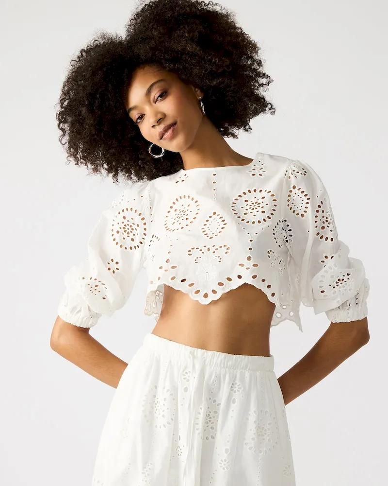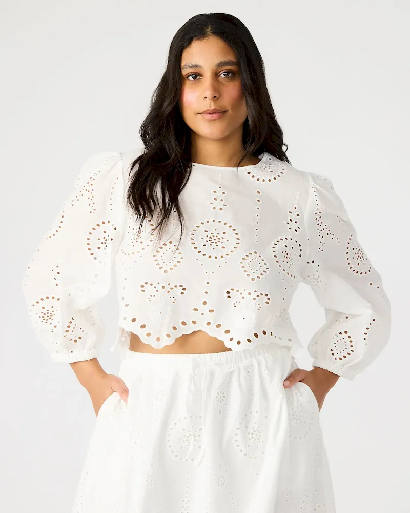 Experience the perfect combination of style and comfort with our MEERA top. Featuring delicate eyelet detailing and long sleeves, this top is a versatile addition to any wardrobe. Plus, it comes with a matching set for a chic and coordinated look. Elevate your fashion game with this must-have piece.