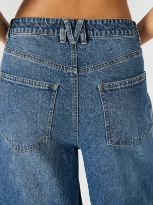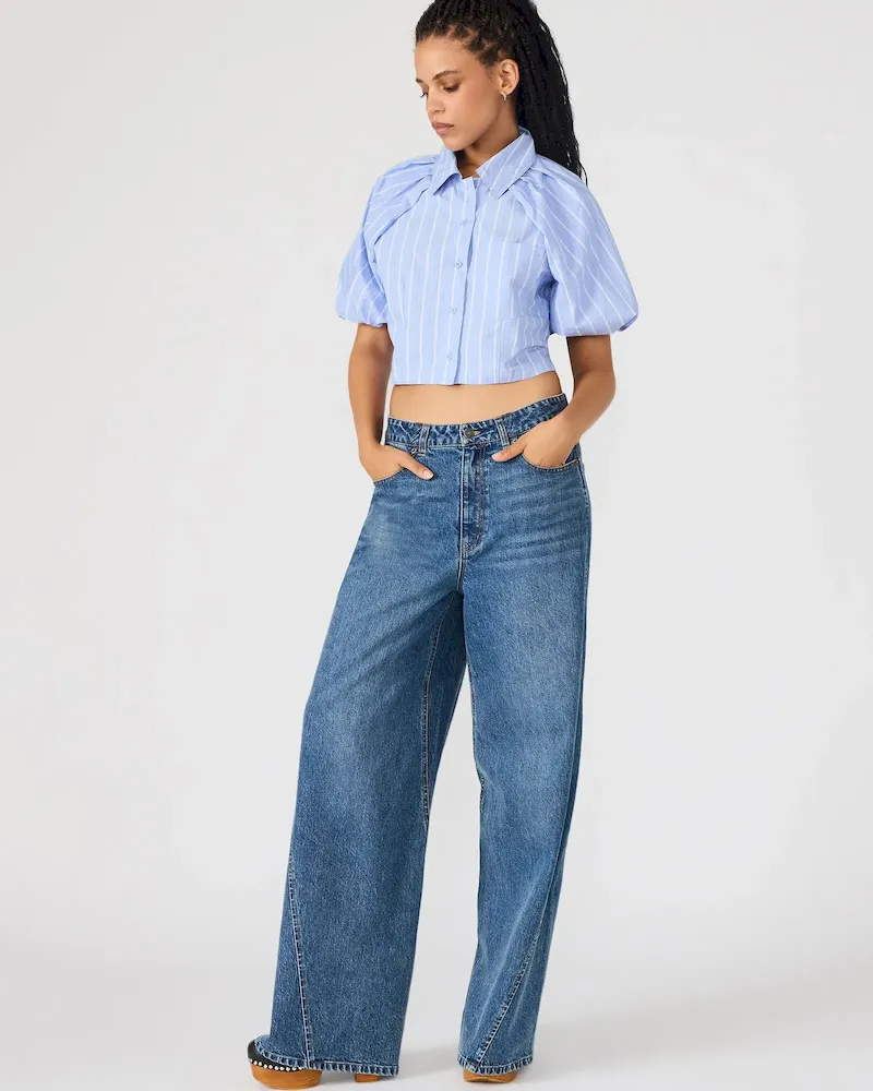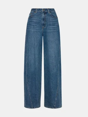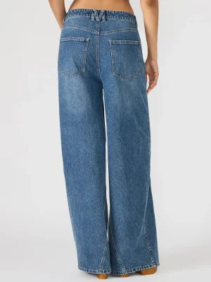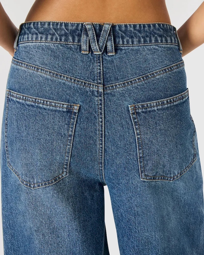 These wide-leg MELLIE denim jeans combine style with practicality. Featuring functional front and back pockets, they offer convenient storage without compromising the sleek silhouette. The button and zipper closure ensures a secure fit, making them a versatile addition to any wardrobe seeking both comfort and contemporary design.