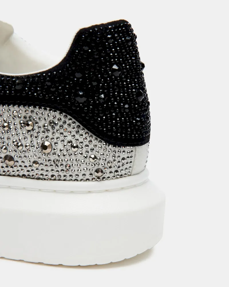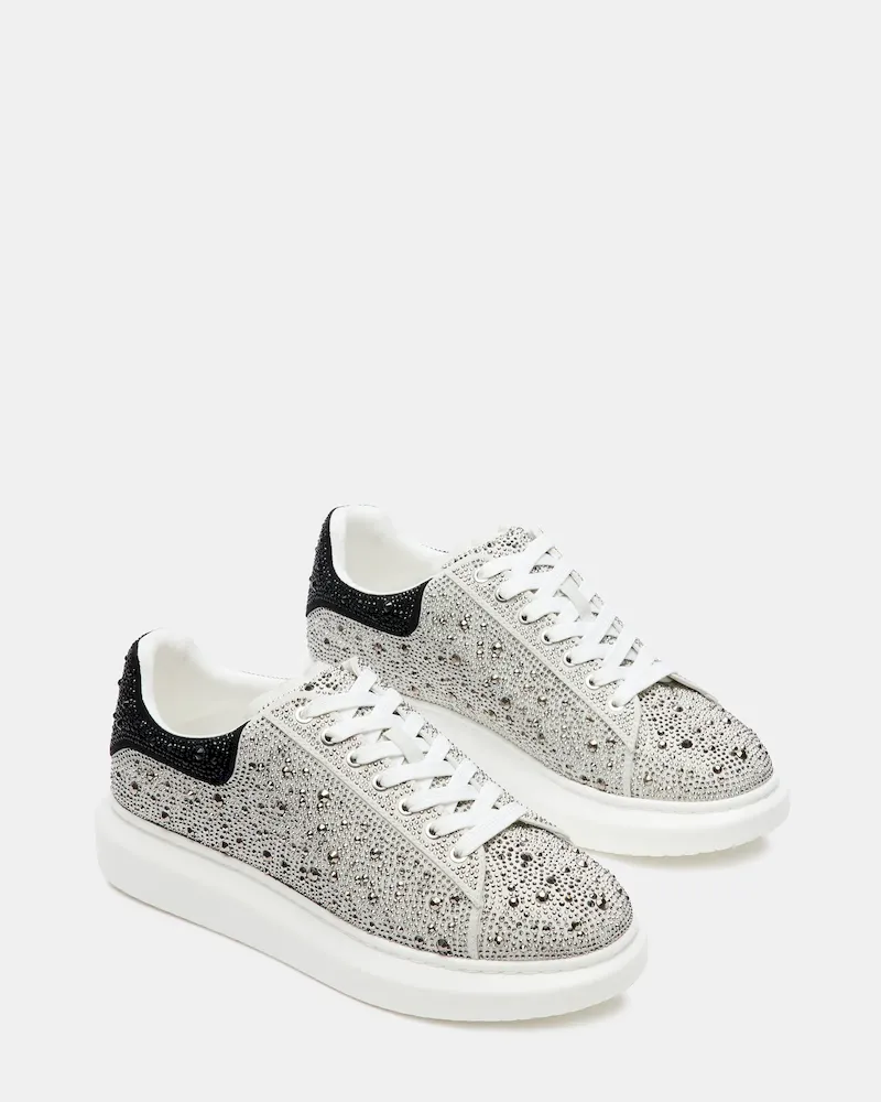 A chunky flat platform sole provides a solid foundation for the ICEBOX sneaker which features all over rhinestones in varied sizes for maximum bling effect.