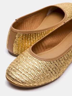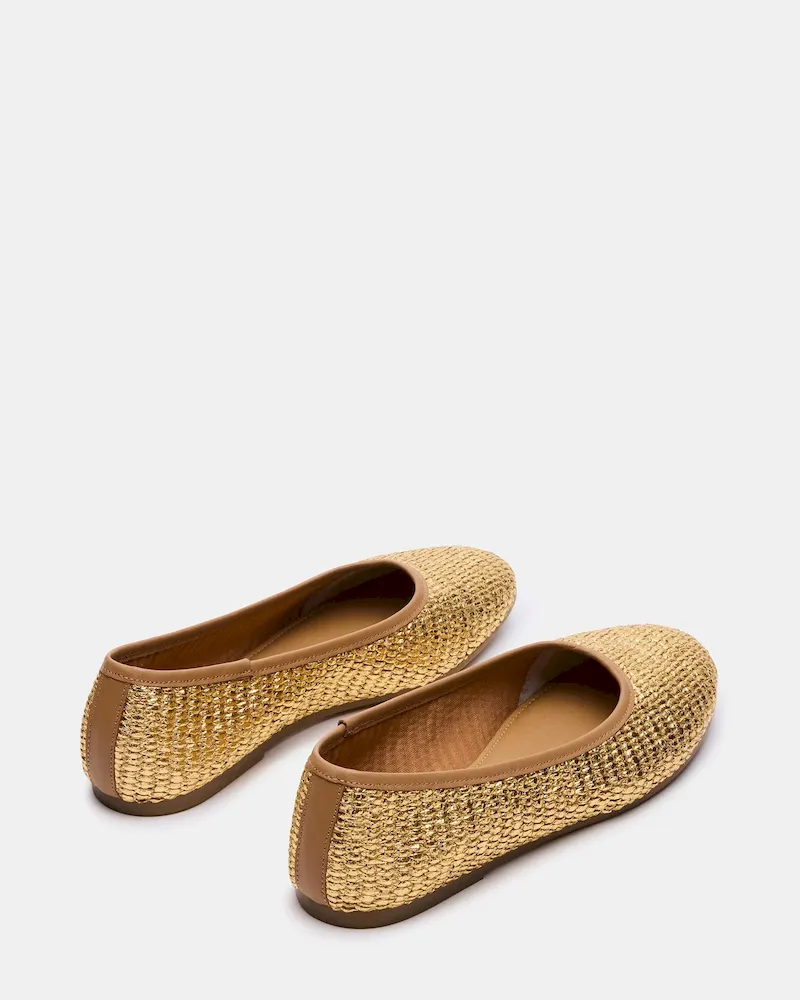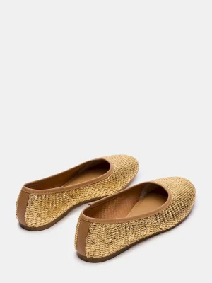 The MERLOT raffia ballet flat features a rounded toe design crafted from raffia, offering a lightweight and breathable fit. Its refined silhouette combines casual elegance with expert craftsmanship, making it an ideal choice for warm-weather wear or effortless everyday style.