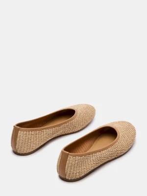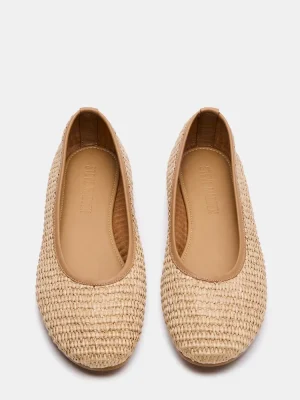 The MERLOT raffia ballet flat features a rounded toe design crafted from raffia, offering a lightweight and breathable fit. Its refined silhouette combines casual elegance with expert craftsmanship, making it an ideal choice for warm-weather wear or effortless everyday style.