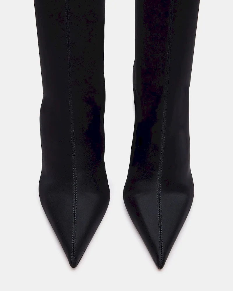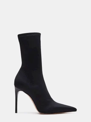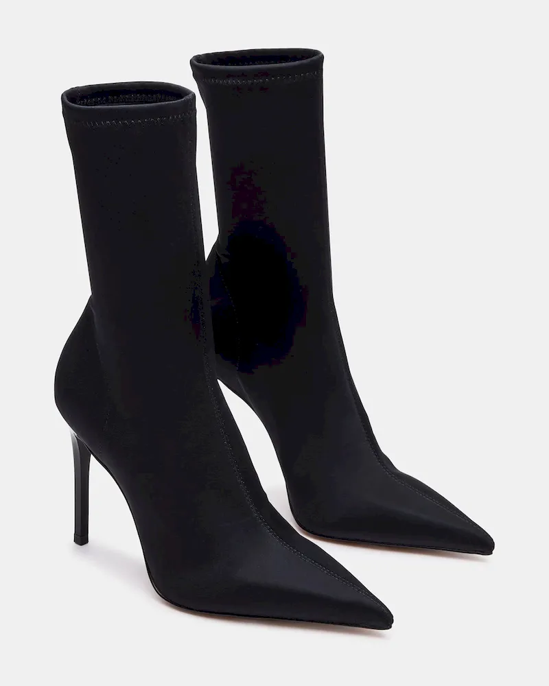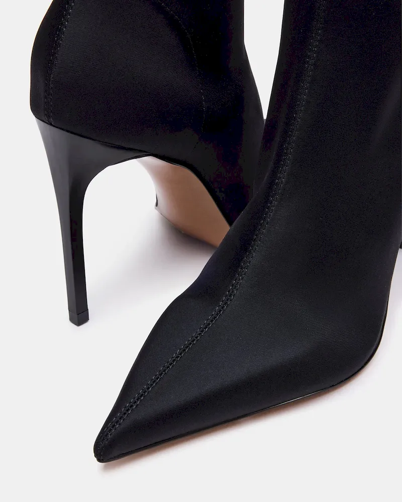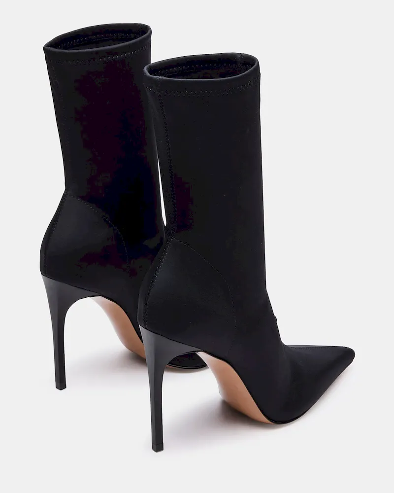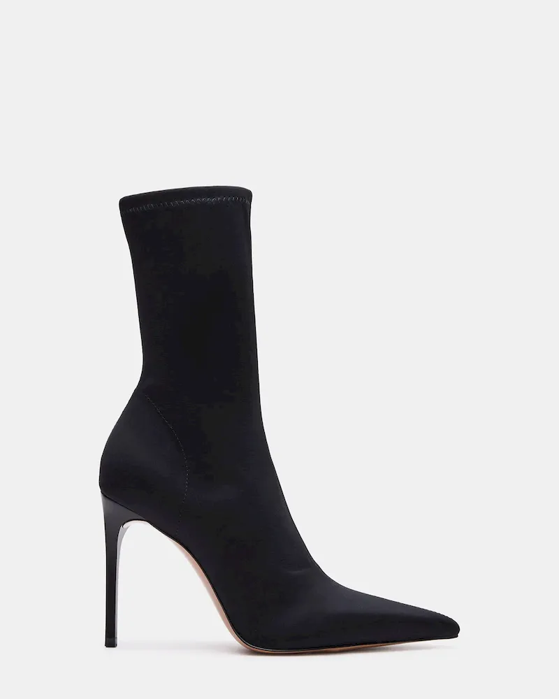 Elevate your style with the MIDNITE BLACK stiletto heel ankle boot. Featuring a sleek pointed toe and a refined bootie silhouette, this design offers a sophisticated edge perfect for both day and night wear. The slender stiletto heel enhances posture and adds a touch of elegance, making it an essential piece for a polished, confident look.