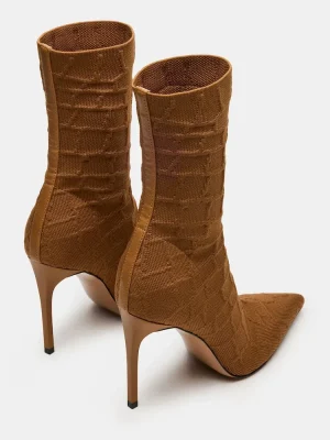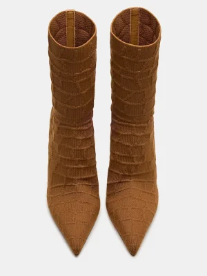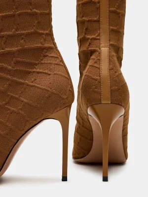 Elevate your style with the MIDNITE TAN CROCODILE stiletto heel ankle boot. Featuring a sleek pointed toe and a refined bootie silhouette, this design offers a sophisticated edge perfect for both day and night wear. The slender stiletto heel enhances posture and adds a touch of elegance, making it an essential piece for a polished, confident look.