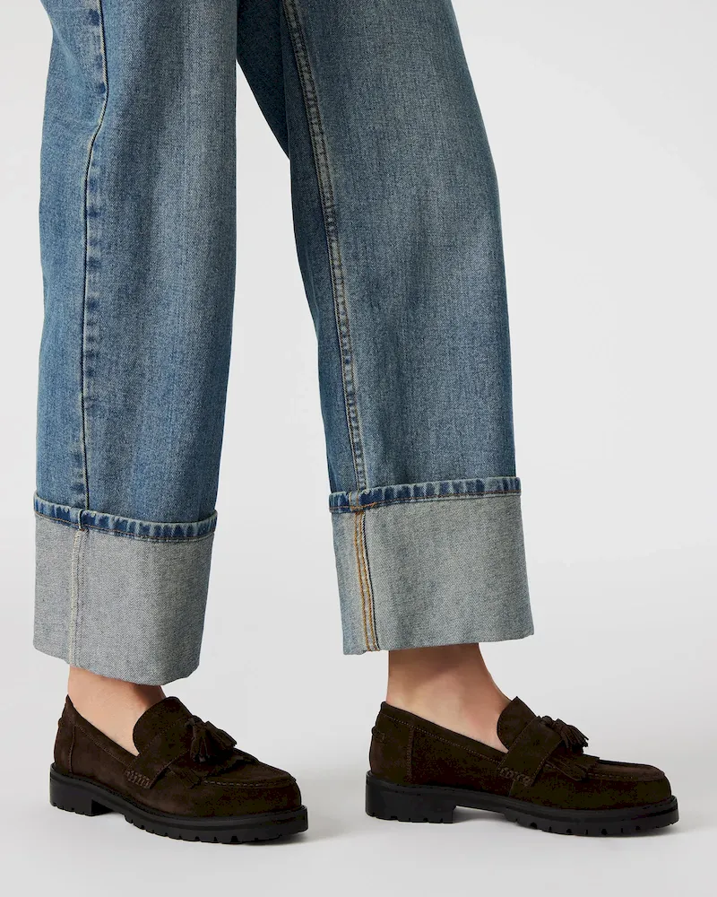 The MINKA lug loafer features both fringe trim and tassels at the top with a treaded platform sole for extra texture.