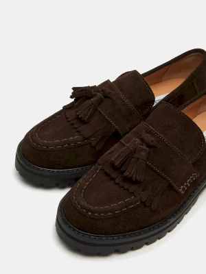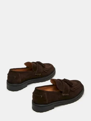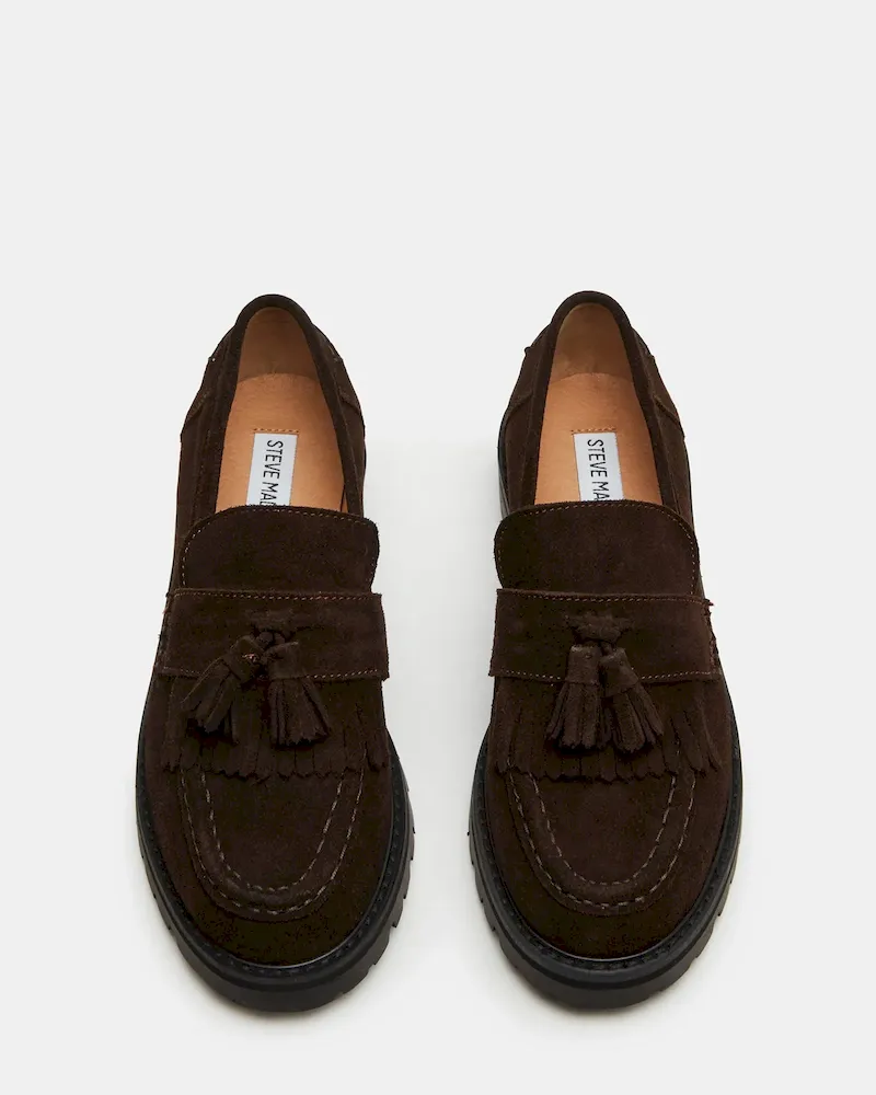 The MINKA lug loafer features both fringe trim and tassels at the top with a treaded platform sole for extra texture.