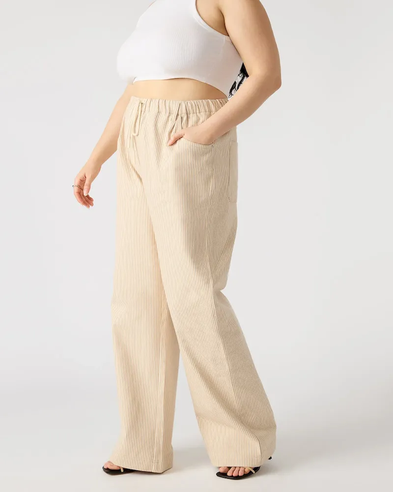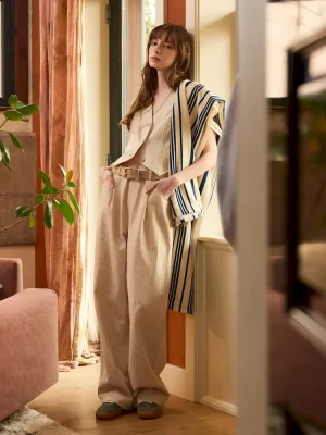 Introducing our MINORCA pants, the ultimate combination of style and comfort. These wide-leg pants feature a convenient pull-on design and a draw cord for a front-tie closure, providing a secure fit and a chic look. They are the perfect addition to your wardrobe for any occasion.