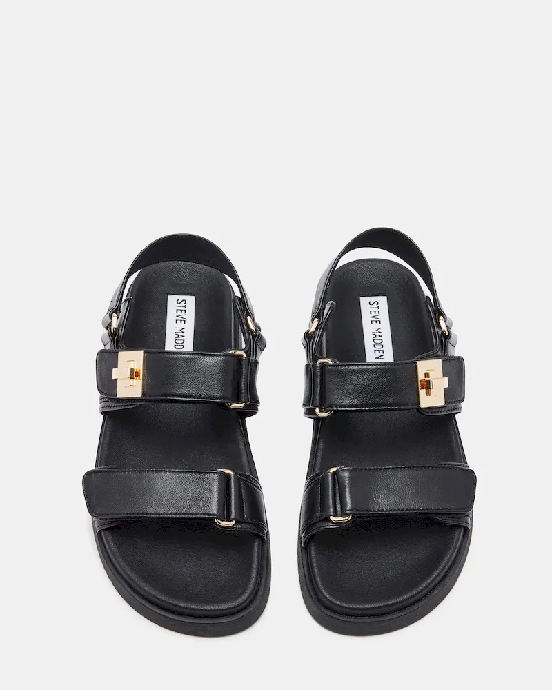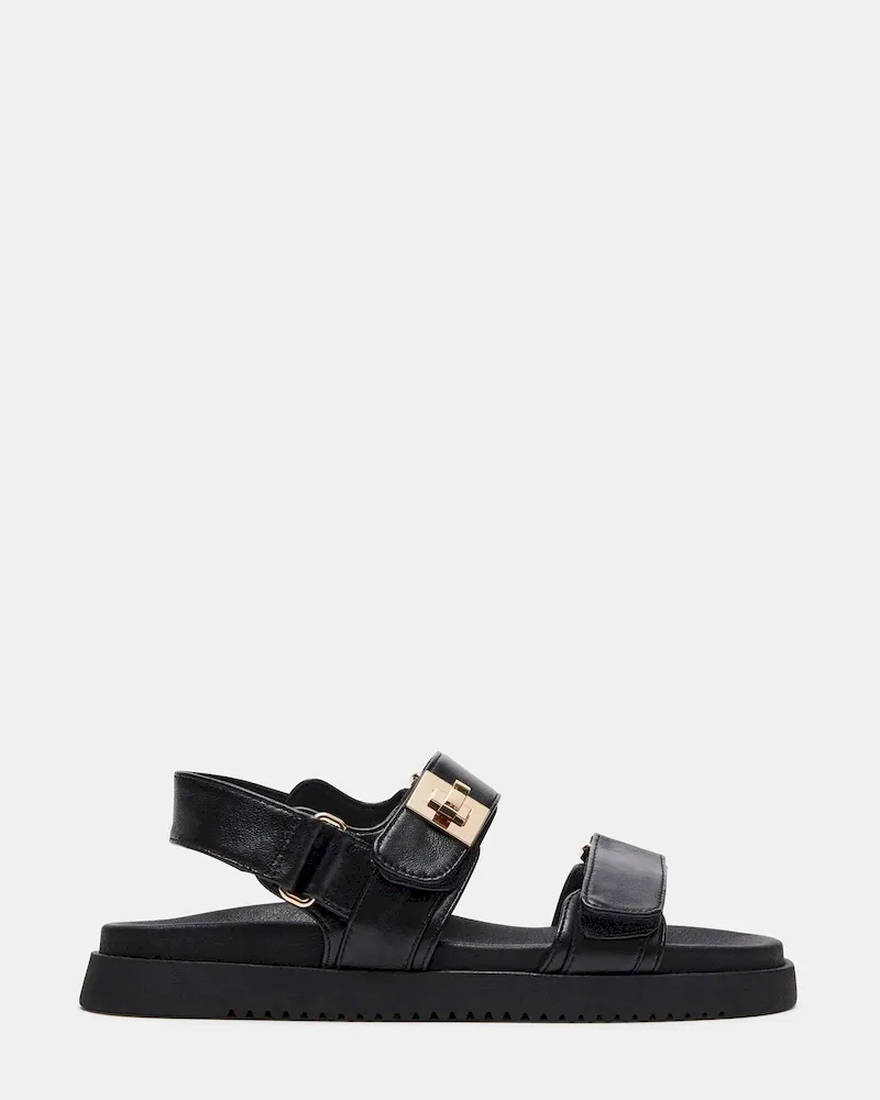 ESSENTIAL + RELAXED + ELEVATEDThe MONA takes the classic three-strap sandal design with a molded footbed and a flat sole and elevates it with a leather construction and substantial gold tone hardware.