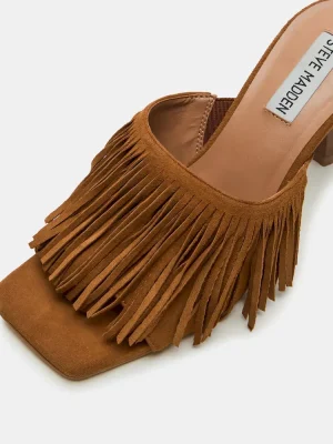 Expertly crafted with a sleek square-toe and stiletto heel, the MORINA mule heel offers a touch of sophistication to any outfit. The open toe and fringe design add a unique flare, making it a versatile and chic addition to your wardrobe.