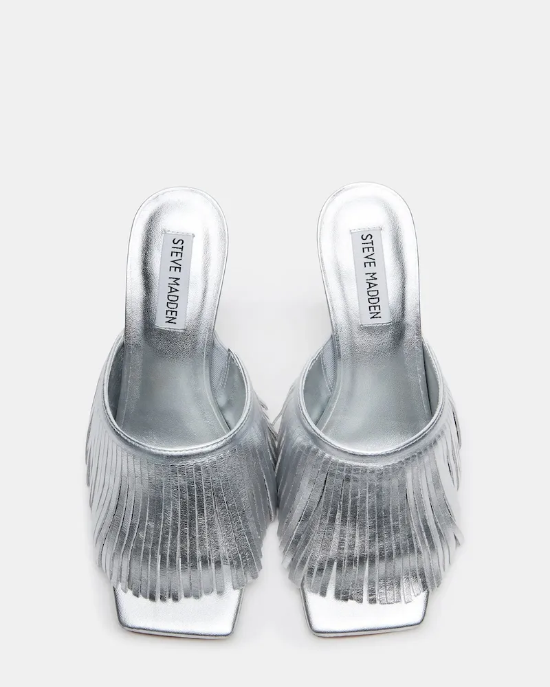 Expertly crafted with a sleek square-toe and stiletto heel, the MORINA mule heel offers a touch of sophistication to any outfit. The open toe and fringe design add a unique flare, making it a versatile and chic addition to your wardrobe.