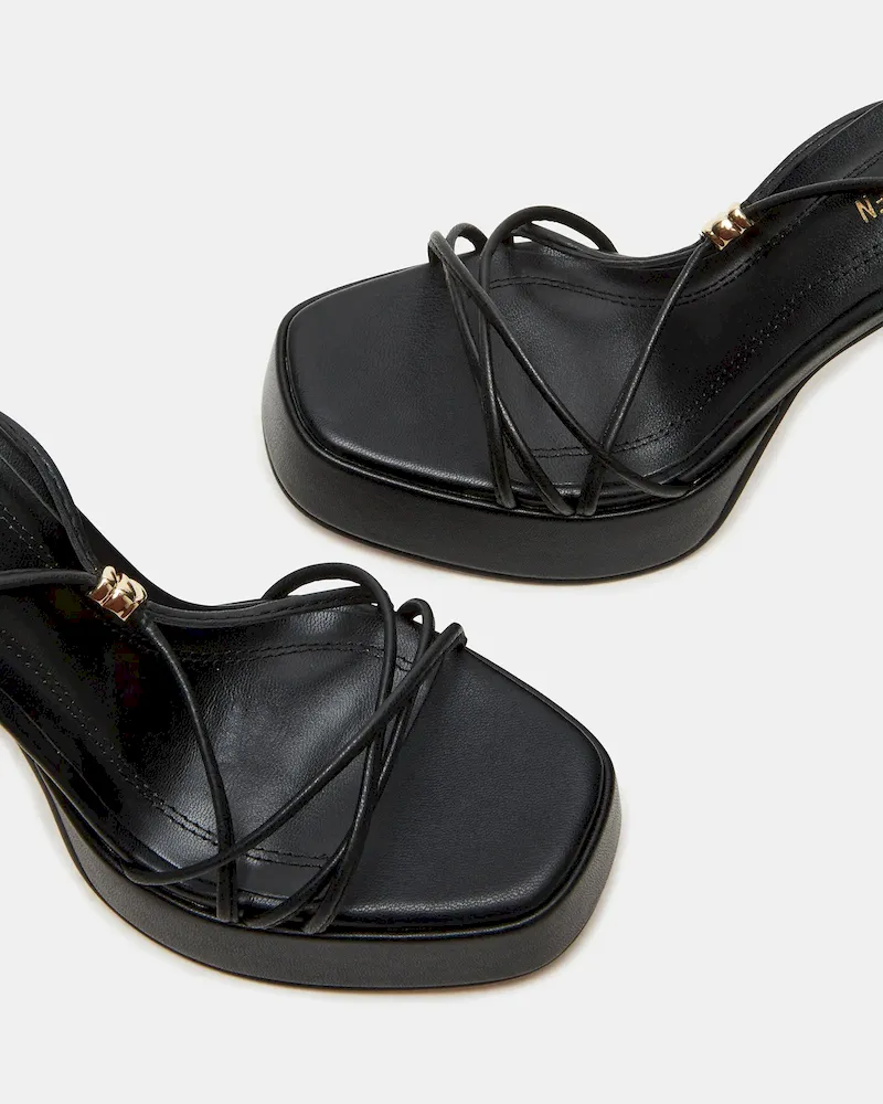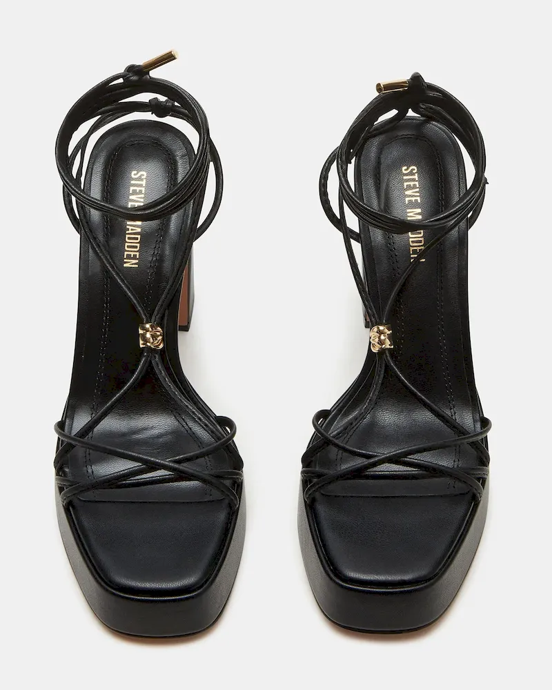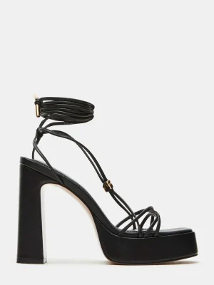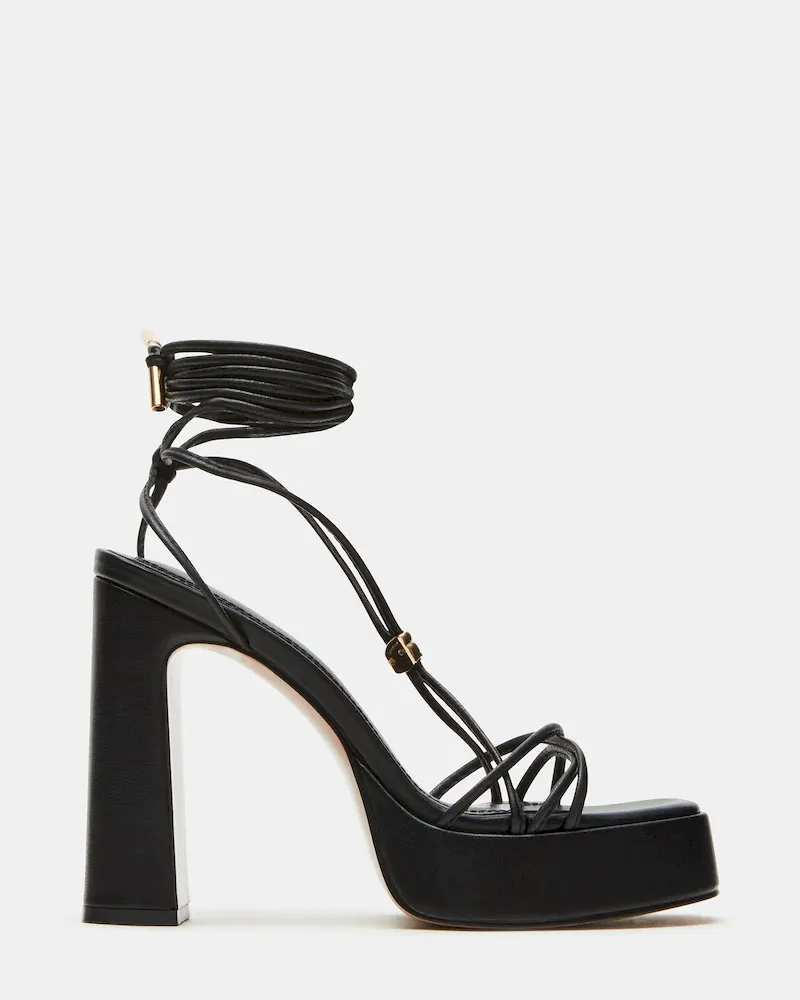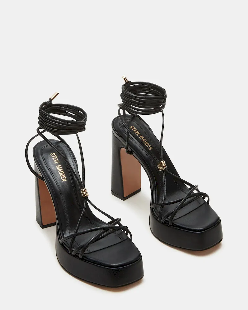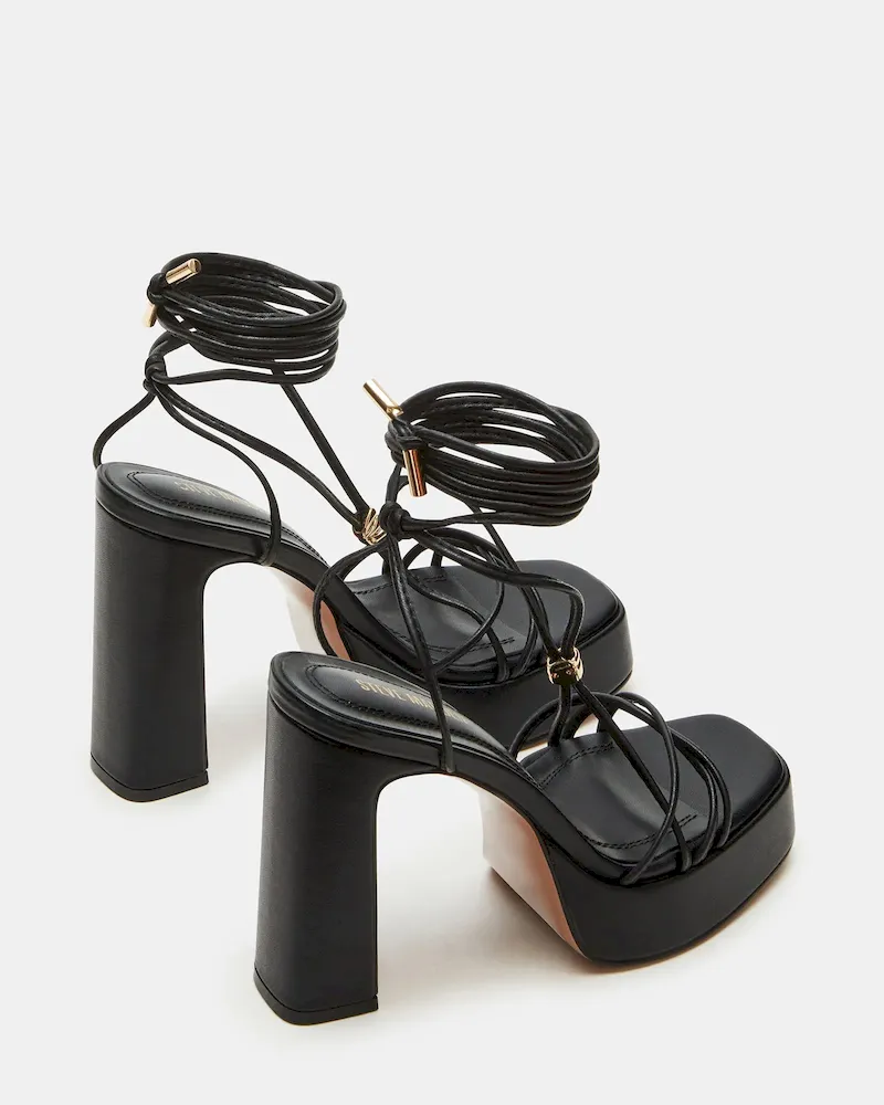 Step into style with the elegant MOULIN. The strappy platform lace-up heel and open-toe design create a luxurious look, while the sturdy block heel provides comfort and stability. Experience fashion and function in one stunning shoe.