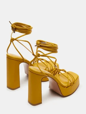 Step into style with the elegant MOULIN. The strappy platform lace-up heel and open-toe design create a luxurious look, while the sturdy block heel provides comfort and stability. Experience fashion and function in one stunning shoe.