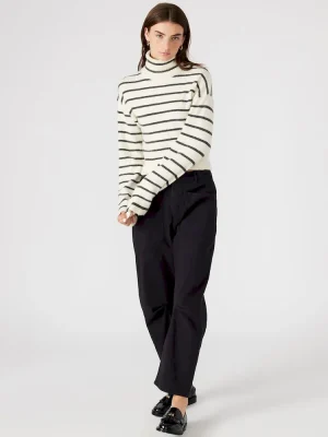 Expertly crafted with a relaxed fit, this NARSHA sweater features a turtleneck design and flare sleeves. It is made from soft brushed material and boasts a stylish stripe pattern for added flair. Stay warm and fashionable with this must-have addition to your wardrobe.