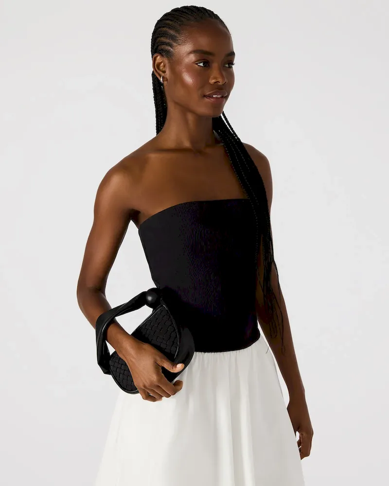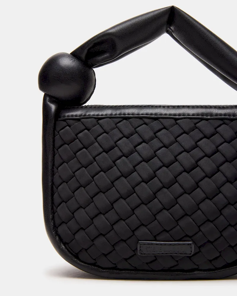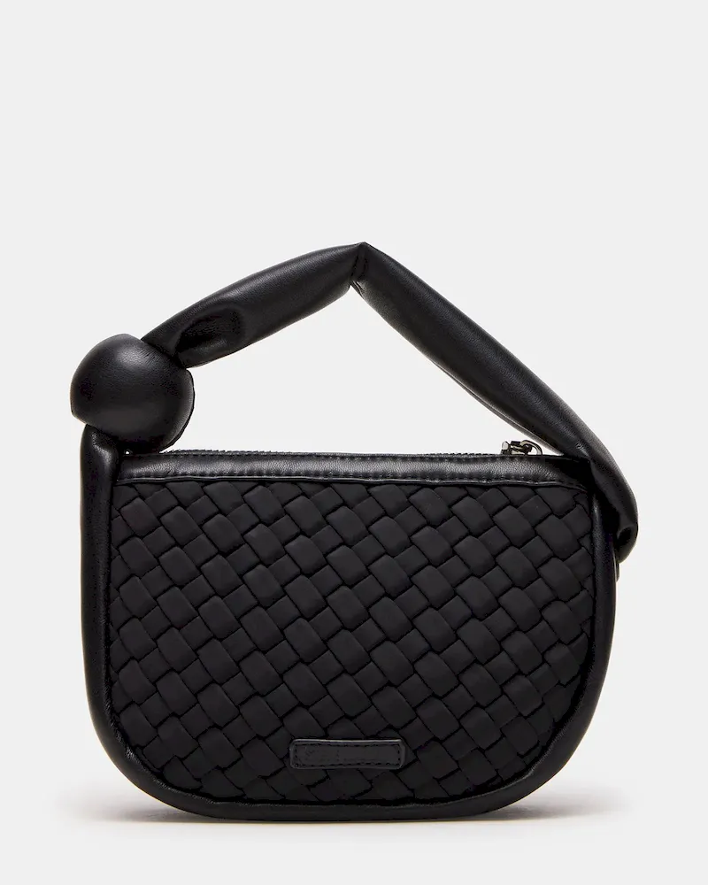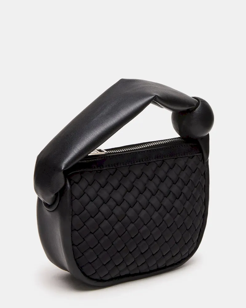 Introducing the NATASHA bag, a mini bag with a chic puffed handle. Made with durable woven neoprene and featuring covered hardware, this bag is both stylish and functional. The zipper closure keeps your belongings secure on the go. Elevate your outfit with this versatile accessory.